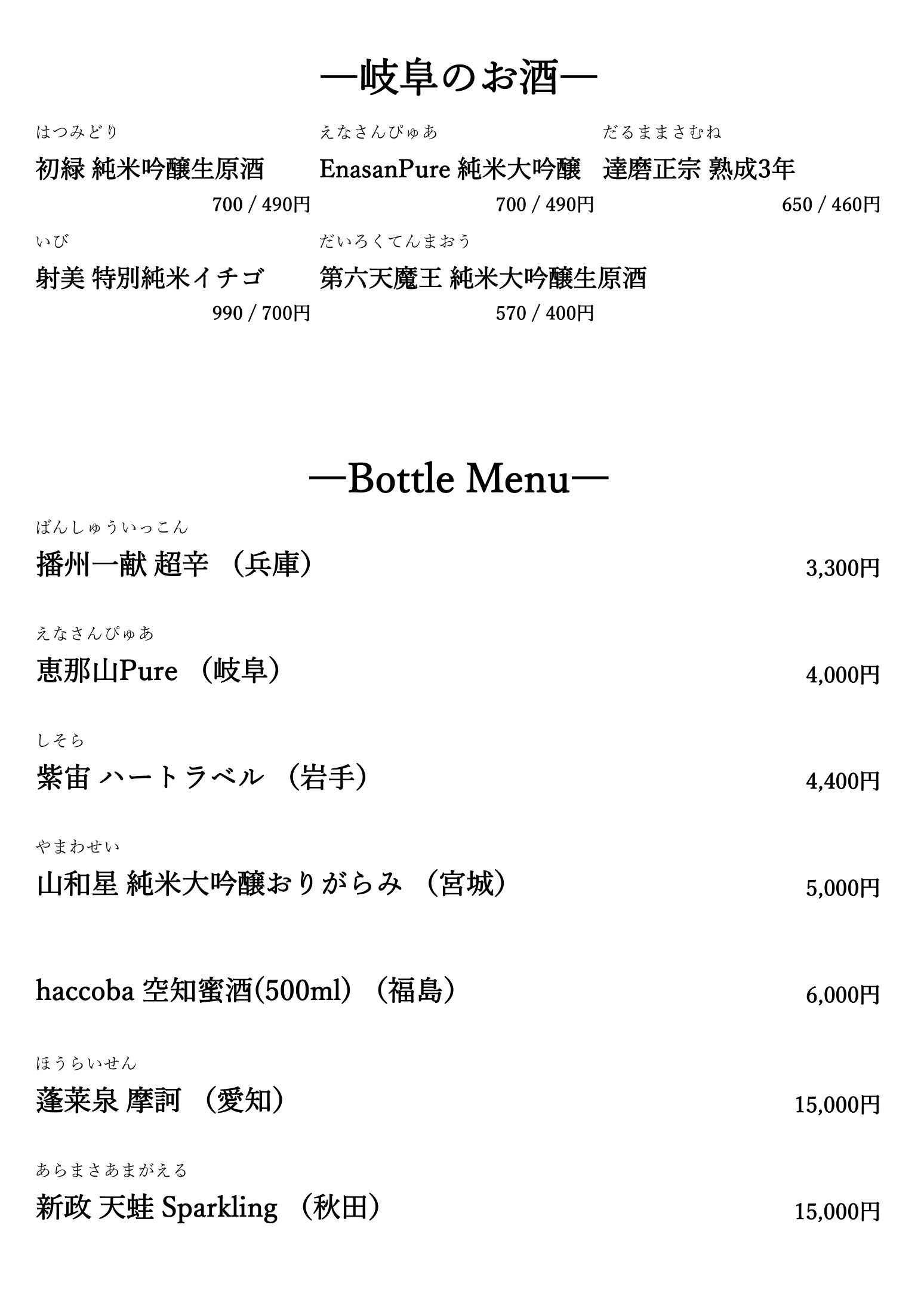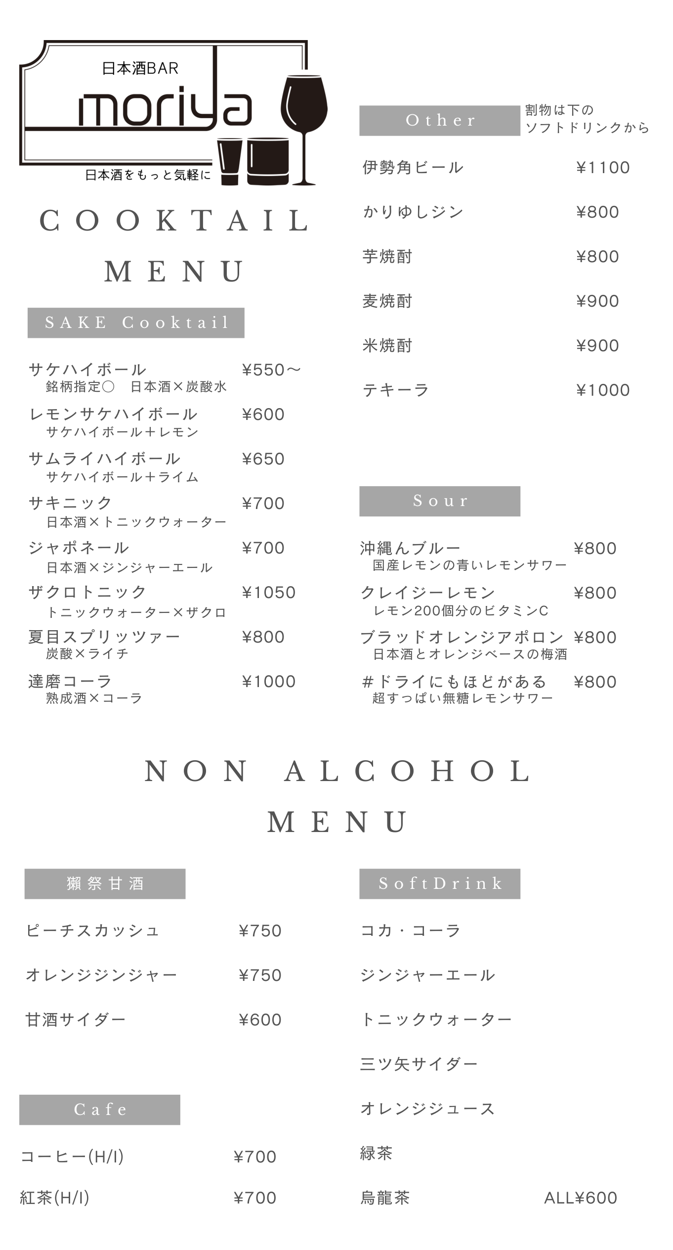 入店後1時間以内のご注文が1杯(90ml)以下の場合